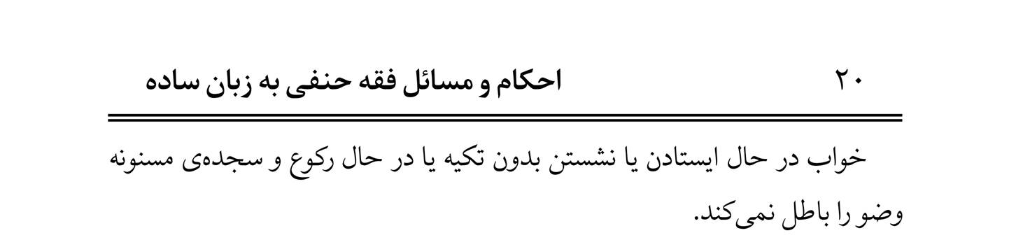 Чизҳое, ки вузӯро ботил (бекор) мекунанд: 1- Ҳар чизе, ки аз маҷрои дафъи идрор (пешоб) ё мақъад (ҷои нишаст, пушт) берун ояд, вузӯро ботил мекунад. 2- Берун омадани хун ё чирк аз ҳар ҷои бадан ва расидани он ба маҳалле, ки шустани он маҳал лозим аст. 3- Истифроғи зардоб, об, хуни мунҷамид (шахшуда, лаълбаста) ба андозаи пурии даҳон. 4- Хуфтан (хоб кардан) бар пушт, ё бар паҳлӯ, ё такя зада ба чизе, ки агар он бардошта шавад, (он инсони хоб) бияфтад. 5- Девонагӣ. 6- Мастӣ. 7- Беҳӯшӣ. 8- Хандидан бо садои баланд дар намозе, ки дорои рукуъ ва саҷда бошад. 9- Мубошарати фоҳиша. Тамоми мавориде, ки зикр шуданд, вузӯро ботил мекунанд. Агар ба миқдори пурии даҳон балғам истифроғ кард, ба тавре, ки агар ҳамаи онҳо ҷамъ шаванд, ба андозаи пурии даҳон мерасанд, - аз назари имом Муҳаммад: Дар сурате, ки таҳаввуъ (дилбеҳузурӣ) яке бошад, вузӯяш ботил мешавад. - аз назари имом АбуЮсуф: Агар маҷлис яке бошад вузӯ ботил мешавад. *** Хоб дар ҳоли истодан ё нишастан бидуни такя ё дар ҳоли рукуъ ва саҷдаи маснуна вузӯро ботил намекунад. |